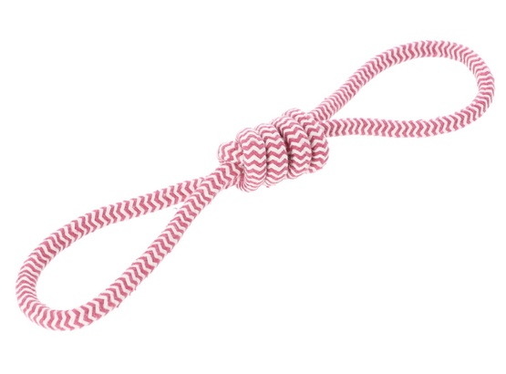 Oferujemy zabawkę, która dostarczy Twojemu psu wiele radości. Przeciągacz o długości 35 cm, wykonany z wysokiej jakości bawełnianego sznura, jest idealny do zabawy zarówno w domu, jak i na świeżym powietrzu. Dzięki swojemu kształtowi, umożliwia siłowe przeciąganie oraz łatwe rzucanie i przenoszenie. Zabawka w kolorze różowym z pewnością przyciągnie uwagę Twojego pupila.