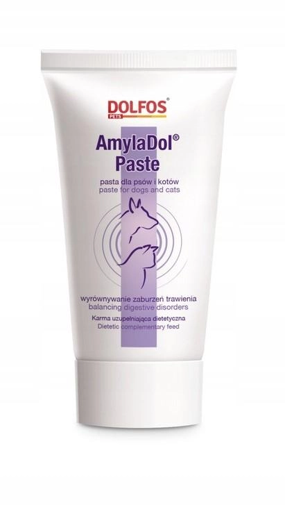 Dolfos AmylaDol Paste 50g to pasta przeznaczona dla psów i kotów, która wspiera naturalne procesy trawienne. Dzięki zawartości enzymów trawiennych, może pomóc w wyrównywaniu zaburzeń trawienia. Produkt jest szczególnie polecany w przypadku zewnątrzwydzielniczej niewydolności trzustki.