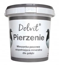 Dolvit Pierzenie to uzupełniająca mieszanka paszowa dla gołębi w okresie pierzenia. Jest to suplement diety o specjalistycznym zastosowaniu, który podaje się wraz ze standardową karmą. Jej regularne podawanie jako dodatku do podstawowej karmy sprzyja skróceniu okresu pierzenia, a także wzrostowi zdrowych, mocnych piór. Dla uzyskania najlepszych efektów możesz podawać mieszankę z wyprzedzeniem. W skład karmy wchodzą starannie dobrane witaminy i składniki mineralne oraz pierwiastki śladowe, których gołębie szczególnie potrzebują w okresie pierzenia.