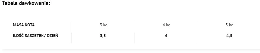 | Ilość saszetek/dzień | 3,5 | 4 | 4,5 |