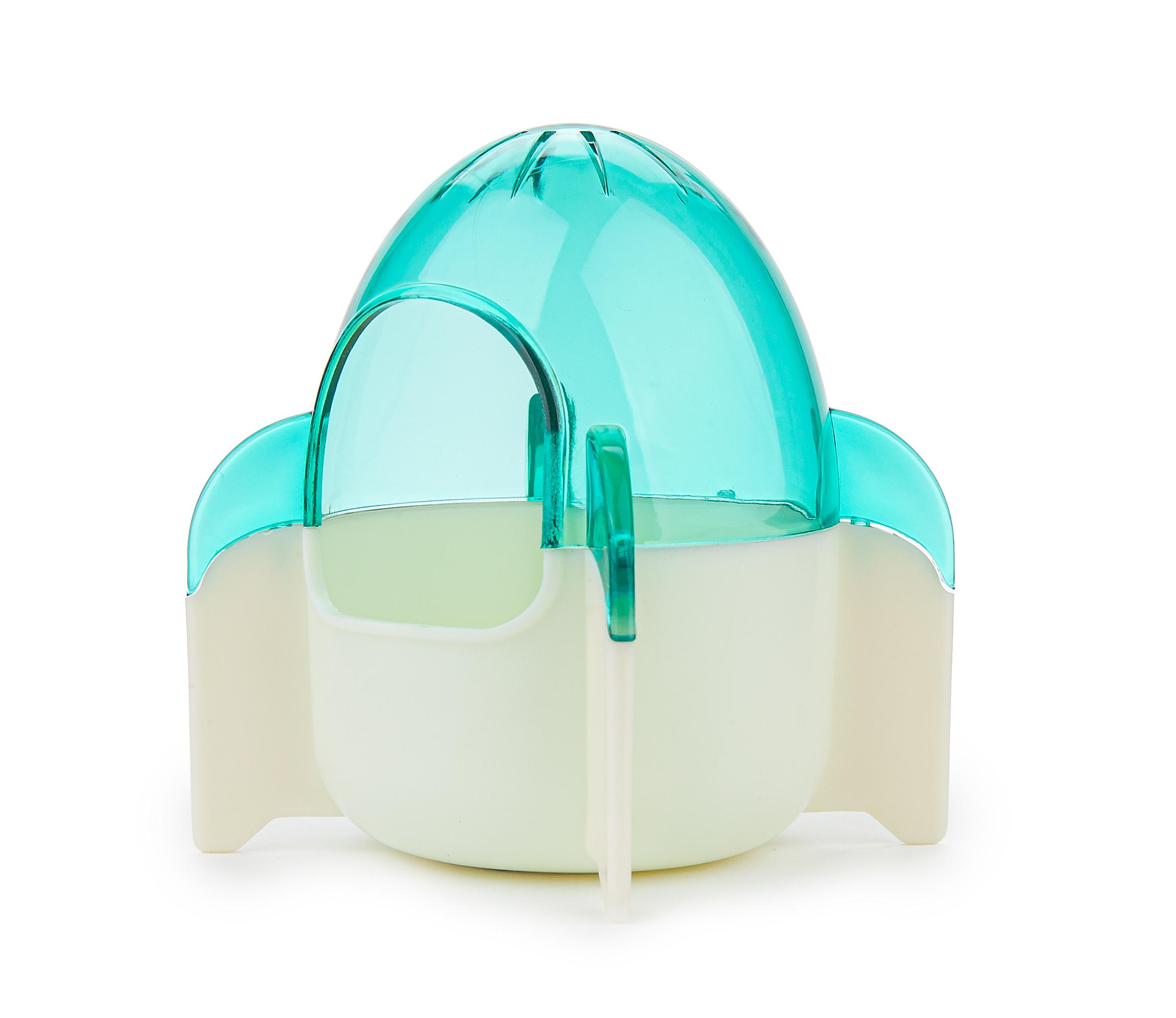 Rakieta nie tylko zachwyci wyglądem, ale też zapewni bezpieczeństwo. Półprzezroczysty niebieski daszek pozwala na obserwację zachowań zwierzaka, a jednocześnie daje mu poczucie schronienia. Domek jest łatwy w sprzątaniu, ponieważ trociny i siano nie przyczepiają się do gładkiej powierzchni.