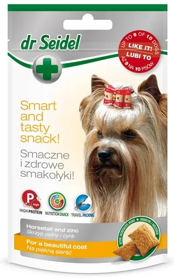 Podając psu smakołyki Dr Seidla na piękną sierść, nie ma potrzeby stosowania dodatkowej suplementacji skrzypem i cynkiem.