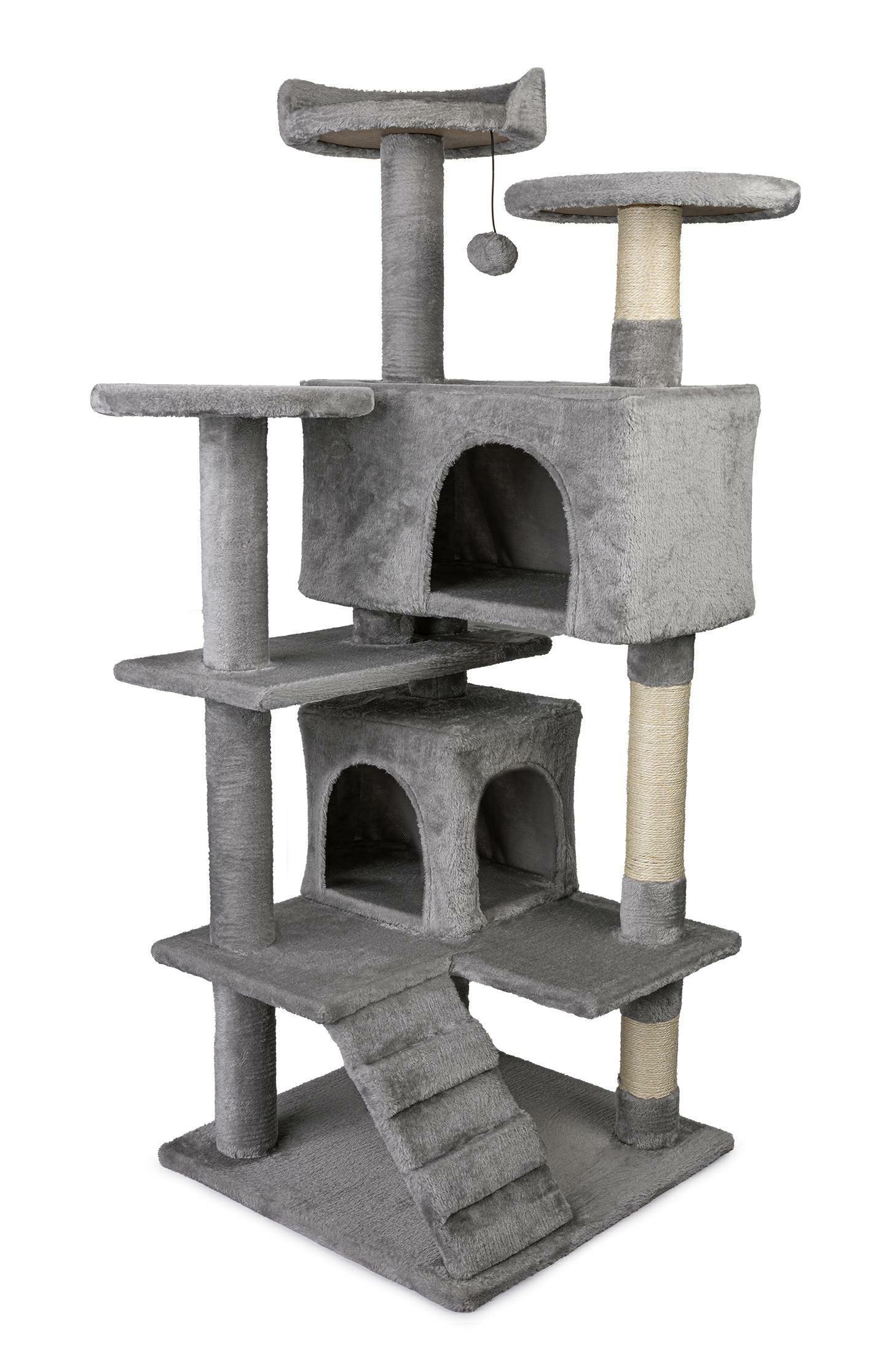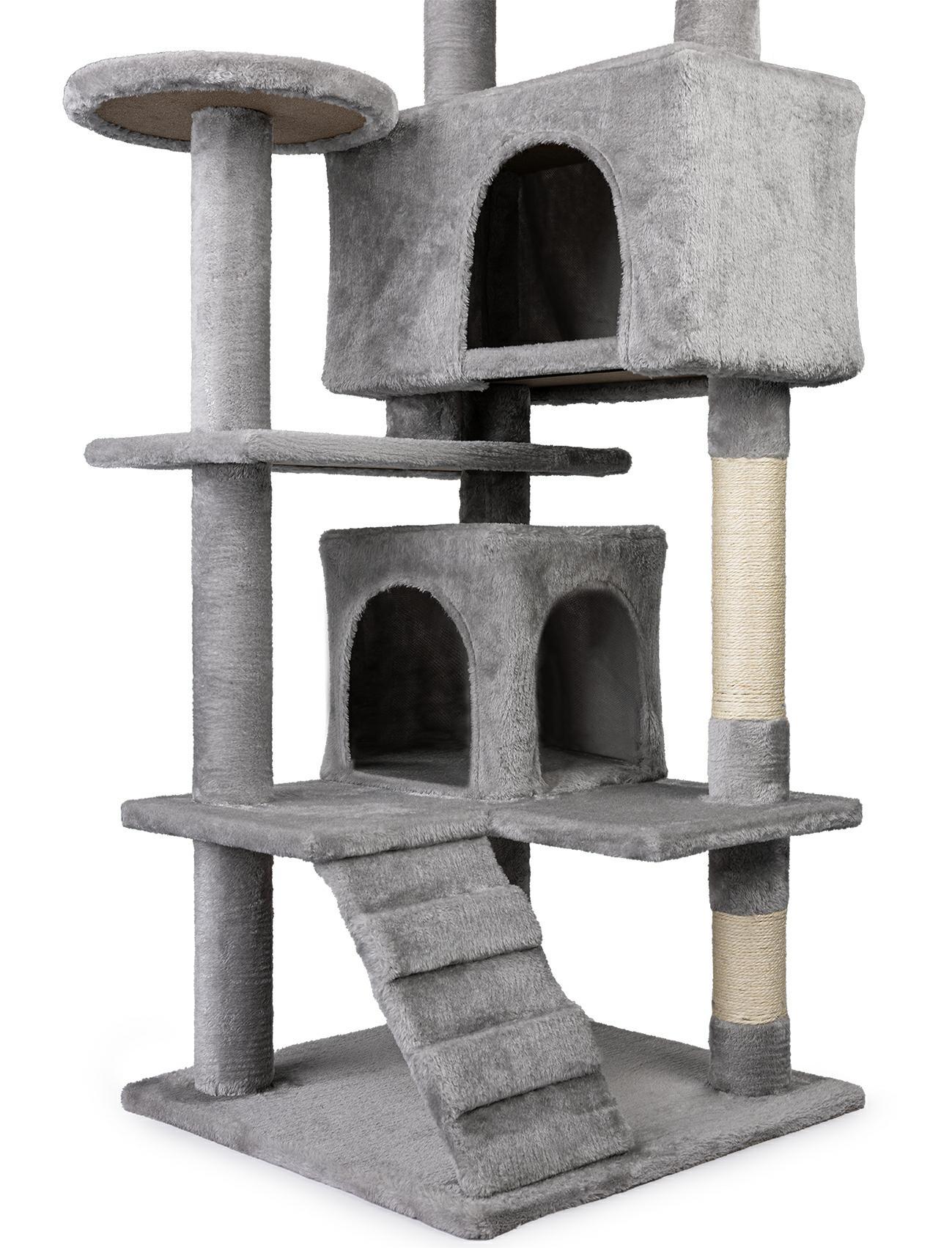 Wykonany z wysokiej jakości materiałów, drapak składa się z ramy owiniętej pluszem oraz sizalową liną, co zapewnia trwałość i komfort. Jego kilkupoziomowa budowa umożliwia zabawę nawet kilku kotom jednocześnie, co sprawia, że jest idealnym wyborem dla wielopetowych domów.