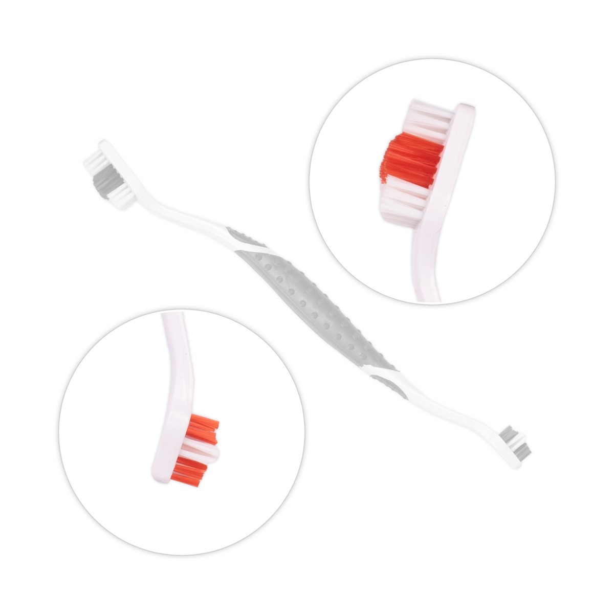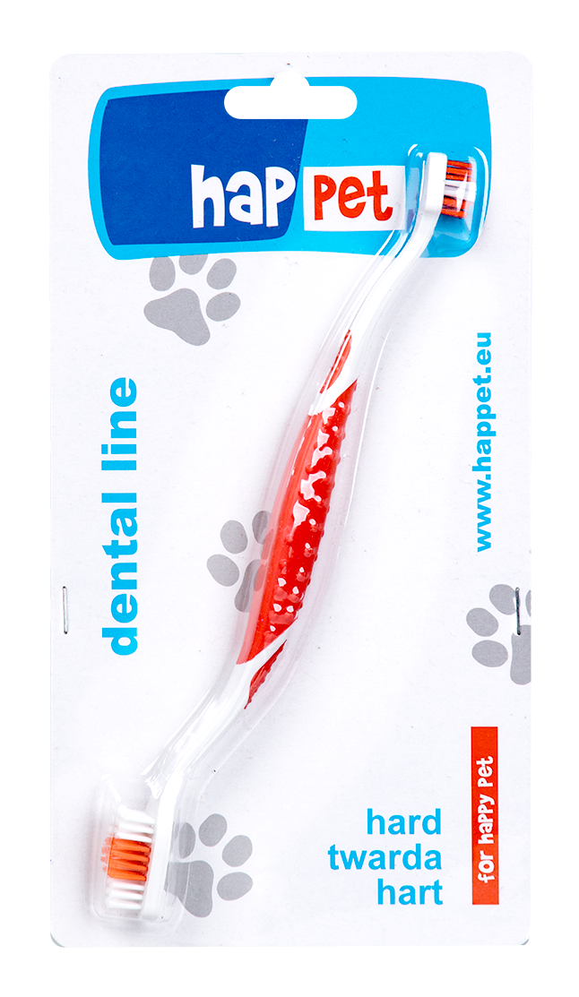 Oferujemy dwustronną szczotkę do zębów, idealną zarówno dla psów, jak i kotów. Dzięki specjalnie ukształtowanemu nylonowemu włosiu o zróżnicowanej długości, skutecznie wyczyścisz zęby swojego pupila oraz przestrzenie międzyzębowe.