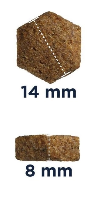 Dawkowanie: W zależności od wagi psa, karma powinna być podawana w następujących ilościach: dla psa o wadze 10 kg - 130–140 g/dzień, dla psa o wadze 15 kg - 170–185 g/dzień, dla psa o wadze 20 kg - 205–225 g/dzień.