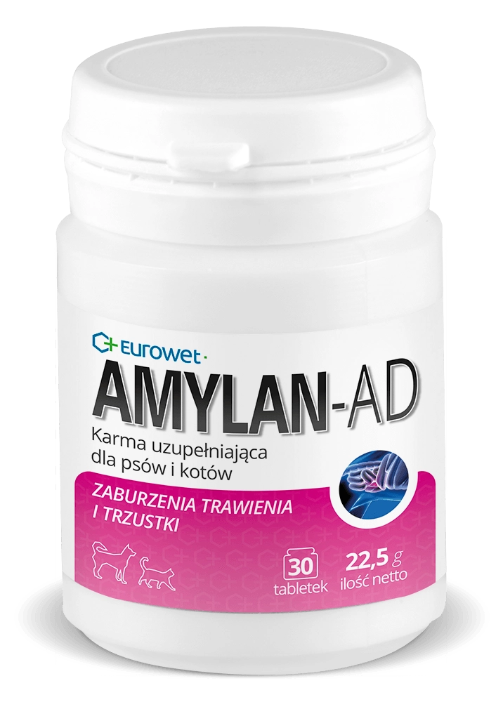 Eurowet Amylan-AD 30tab to karma uzupełniająca, która wspiera trawienie i pracę trzustki u psów i kotów. Dzięki niej można skutecznie wyrównać zaburzenia trawienne, co przyczynia się do lepszego samopoczucia zwierząt.