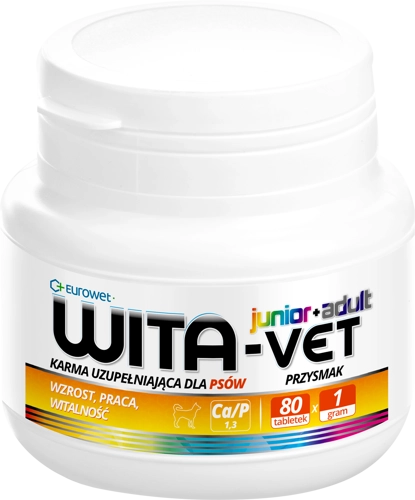 Wita-Vet Junior + Adult dla psów od 25kg 1g 80tabl • Kod: mls-9685 • EAN: 5907785440814 • Kategoria: Preparaty żywieniowe dla psów. Wybierz i kup