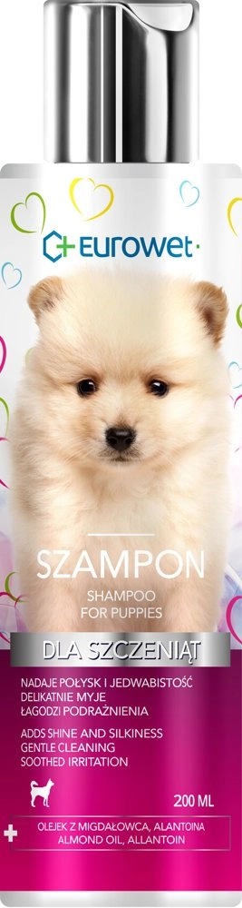 Szampon Eurowet dla szczeniąt to idealne rozwiązanie dla delikatnej skóry i sierści Twojego pupila. Dzięki swojej formule, nadaje połysk oraz jedwabistość, a także łagodnie myje, co sprawia, że jest doskonały dla młodych psów.