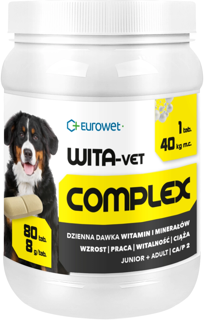 Eurowet Wita-Vet Junior+Adult 8g 80tab to karma uzupełniająca, która wspiera rozwój psów dużych ras oraz szczeniąt w okresie wzrostu. Jest również odpowiednia dla suk w ciąży i laktacji. Dzięki optymalnemu stosunkowi wapnia do fosforu (Ca/P=2), karma wspomaga mineralizację kości, co jest kluczowe dla zdrowego rozwoju. Poza tym, jej wyjątkowy smak sprawia, że zwierzęta chętnie ją przyjmują.