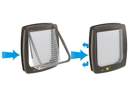 Model Swing 15 wyposażony jest w innowacyjny system antyprzeciągowy oraz 4-kierunkowy system blokowania. Umożliwia on dostosowanie sposobu otwierania drzwiczek do Twoich potrzeb, w tym opcje tylko wejścia, tylko wyjścia, otwarte w obu kierunkach lub całkowicie zamknięte.