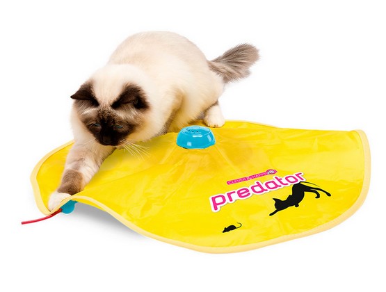 Zabawka posiada elastyczny pręcik, który porusza się w dwóch kierunkach, imitując ruch myszki. Dzięki temu koty nie mogą się oprzeć polowaniu na nią. Możesz wybierać spośród trzech prędkości ruchu oraz trybu losowego, co zapewnia różnorodność zabawy.