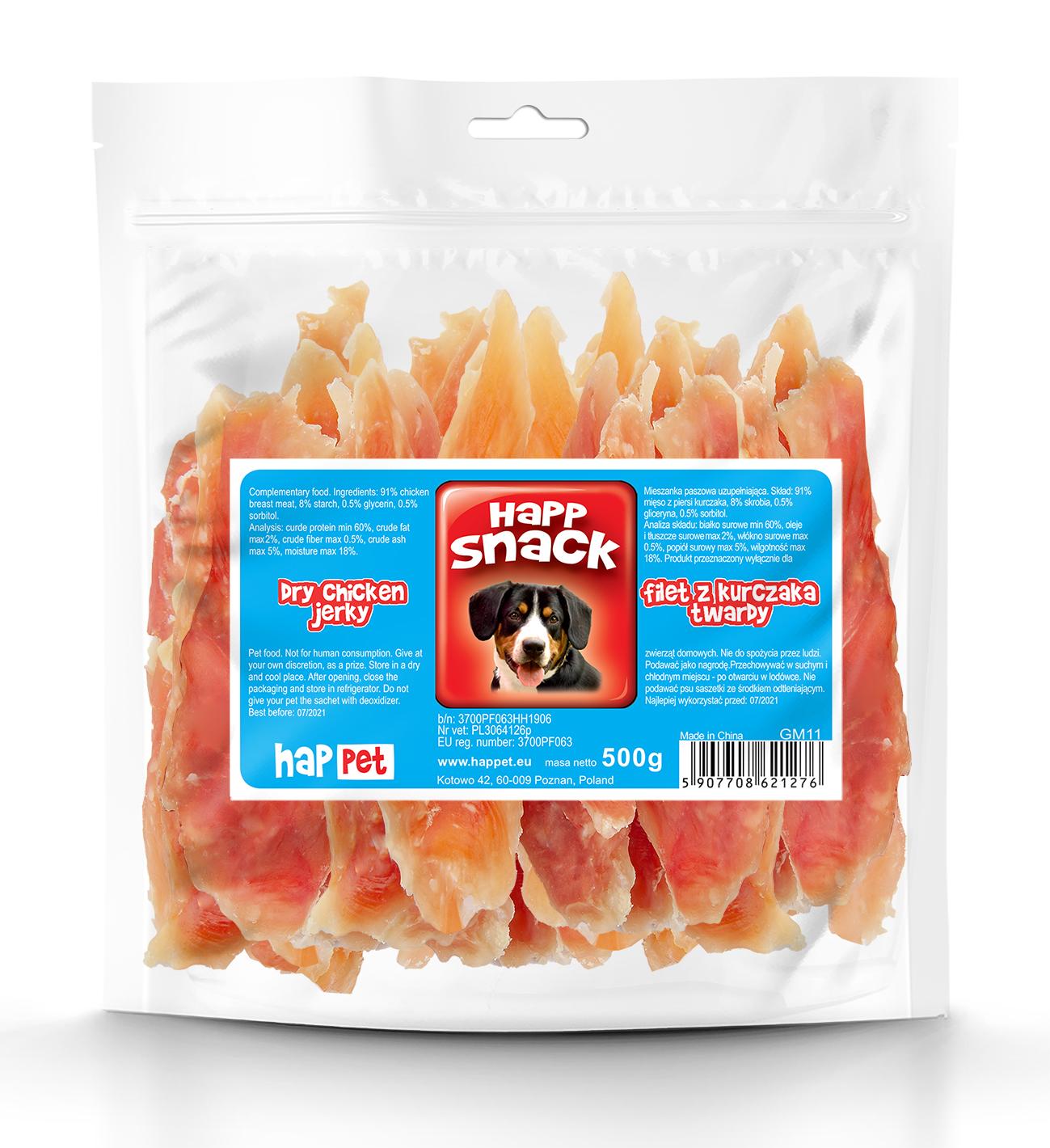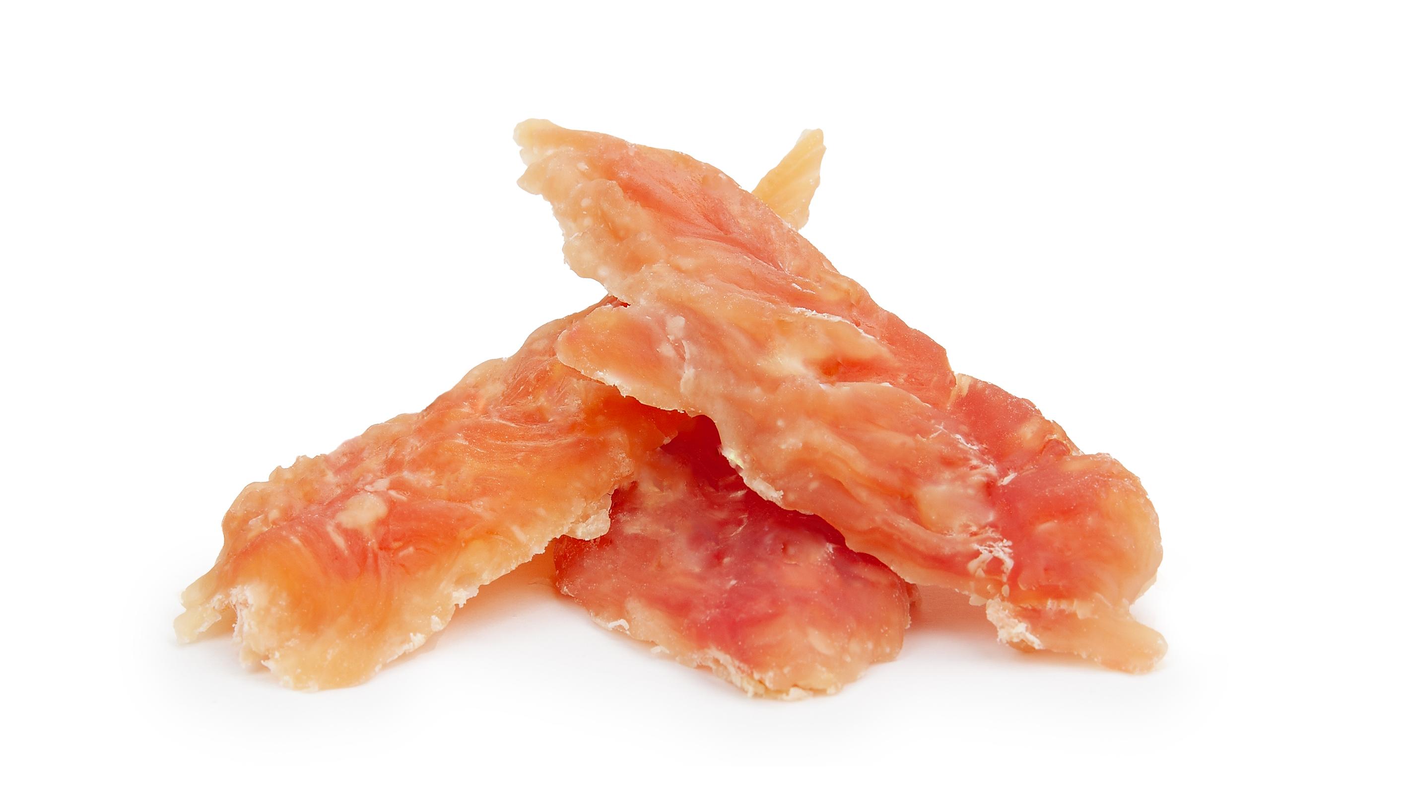 Skład: 91% mięso z piersi kurczaka, 8% skrobia, 0,5% gliceryna, 0,5% sorbitol