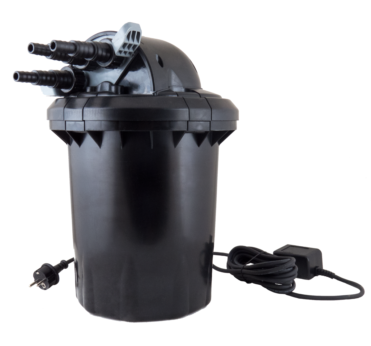 Filtr można zakopać w podłożu, co sprawia, że nie psuje on estetyki oczka wodnego. Wbudowana lampa UV o mocy 9 W sterylizuje wodę, eliminując glony oraz chorobotwórcze mikroorganizmy, co poprawia wygląd stawu i sprzyja zdrowiu jego mieszkańców.