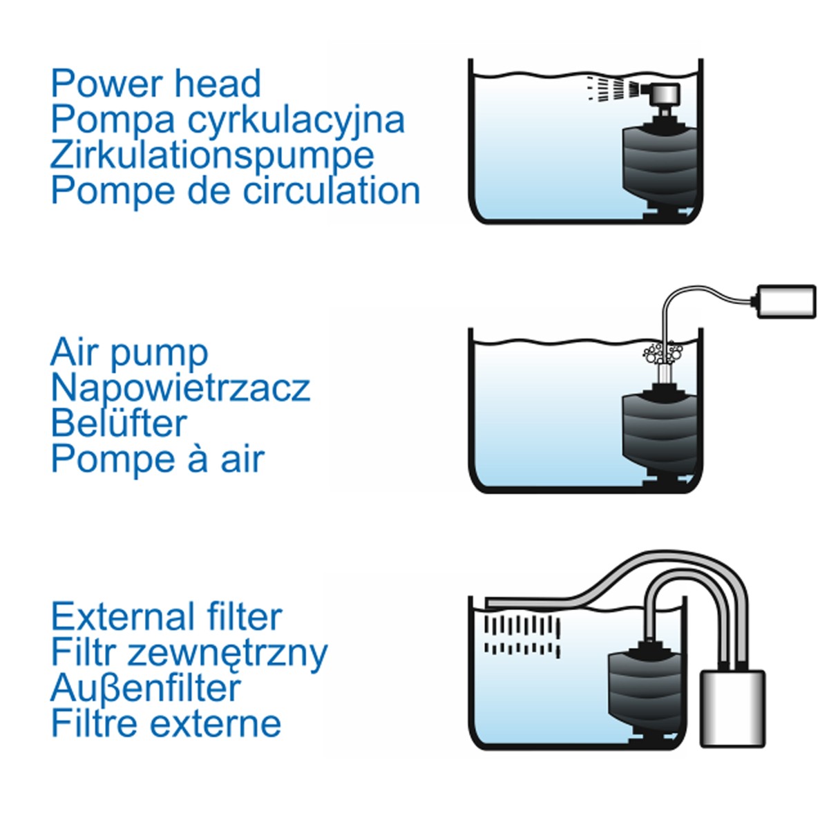 Możliwości zastosowania filtra są różnorodne: można go używać samodzielnie z pompką do napowietrzania, jako prefiltr w połączeniu z filtrem kubełkowym, co zapobiega zassaniu małych krewetek i ryb, a także wydłuża żywotność kubełka. Dodatkowo, filtr można podłączyć do wewnętrznej turbiny, co zapewnia efektywną filtrację.