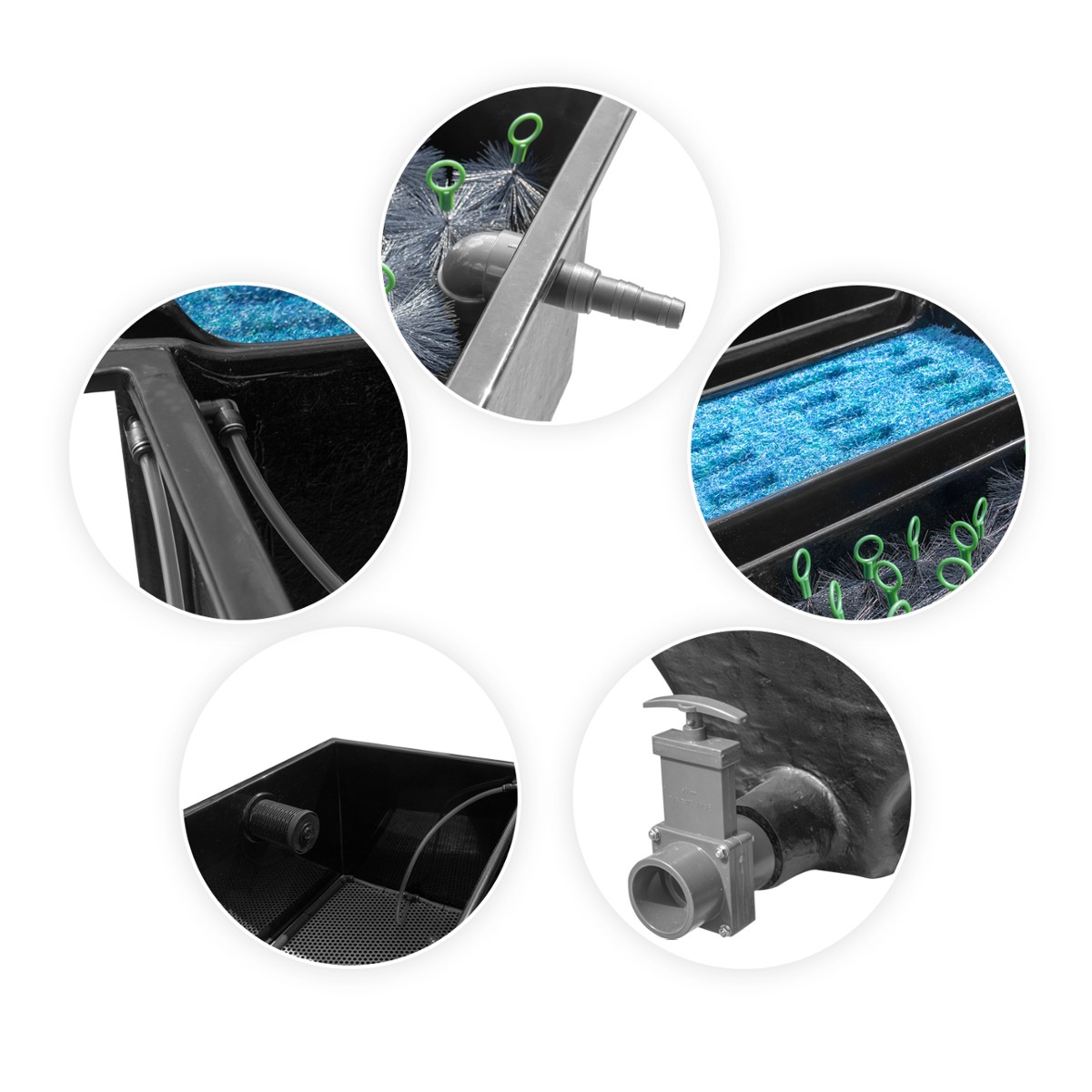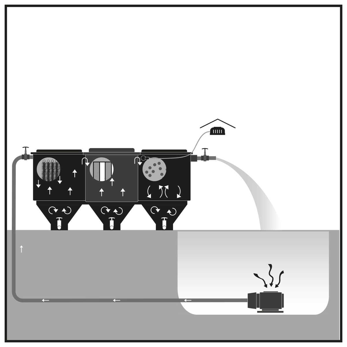 Filtr stawowy BIOklar move 15 to zaawansowany system filtracji, idealny do zbiorników wodnych o pojemności do 15 000 litrów. Dzięki zastosowaniu technologii pływającego złoża, filtr zapewnia skuteczne oczyszczanie wody, co pozwala na zachowanie jej czystości i klarowności, nawet w przypadku dużej obsady ryb.