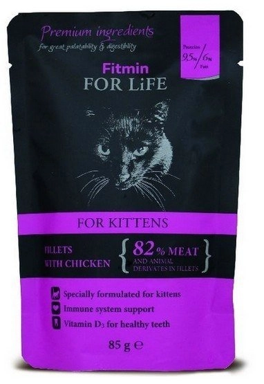 Wybierając Fitmin Cat For Life Kitten Chicken 85g, wspierasz odporność swojego kociaka, a także dbasz o jego zdrowie dzięki dodatkowi witaminy D3.