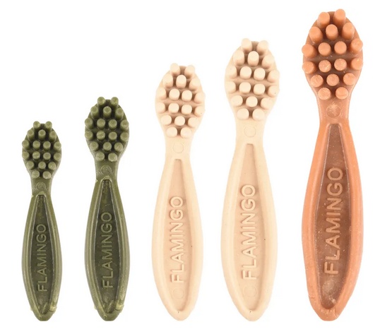 Flamingo Veggie gryzak szczoteczka 7,5cm to doskonały wybór dla każdego psa. Te gryzaki mają formę szczoteczki, co sprawia, że są nie tylko smaczną przekąską, ale także atrakcyjną nagrodą. Idealne jako przerywnik między posiłkami, zachęcają do żucia i pomagają w utrzymaniu zdrowych zębów.