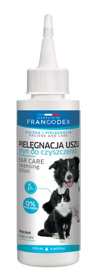 Płyn do mycia uszu psów i kotów skutecznie zapobiega infekcjom. Hamuje rozwój drobnoustrojów, usuwa nadmiar woskowiny oraz innych zanieczyszczeń, a także osusza kanał słuchowy. Dzięki specjalnemu aplikatorowi, stosowanie produktu jest proste i wygodne.