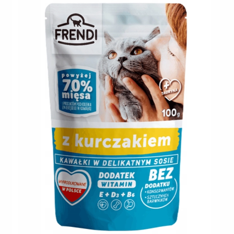 Kawałki kurczaka w delikatnym sosie to pyszna propozycja dla kotów wszystkich ras. Zawierają aż 70% mięsa oraz produktów pochodzenia zwierzęcego, co sprawia, że są smaczną i zdrową opcją dla Twojego pupila. Bez konserwantów i sztucznych barwników, wzbogacone o witaminy i składniki mineralne.