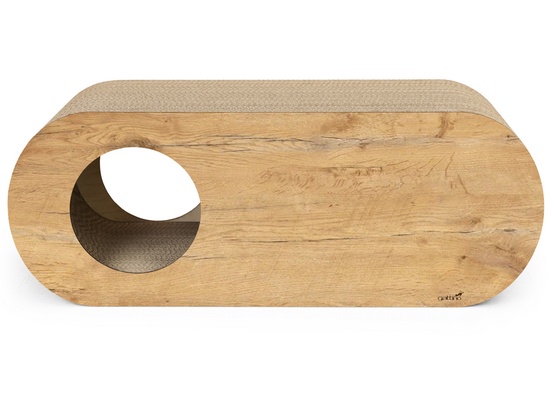Produkt jest wytwarzany w Polsce, co zapewnia wysoką jakość wykonania. Użyto naturalnej, wytrzymałej tektury falistej, drewnianego lica oraz płyty HDF. Drapak ma profilowany kształt, dzięki czemu jest wygodny do leżenia i odpoczynku.