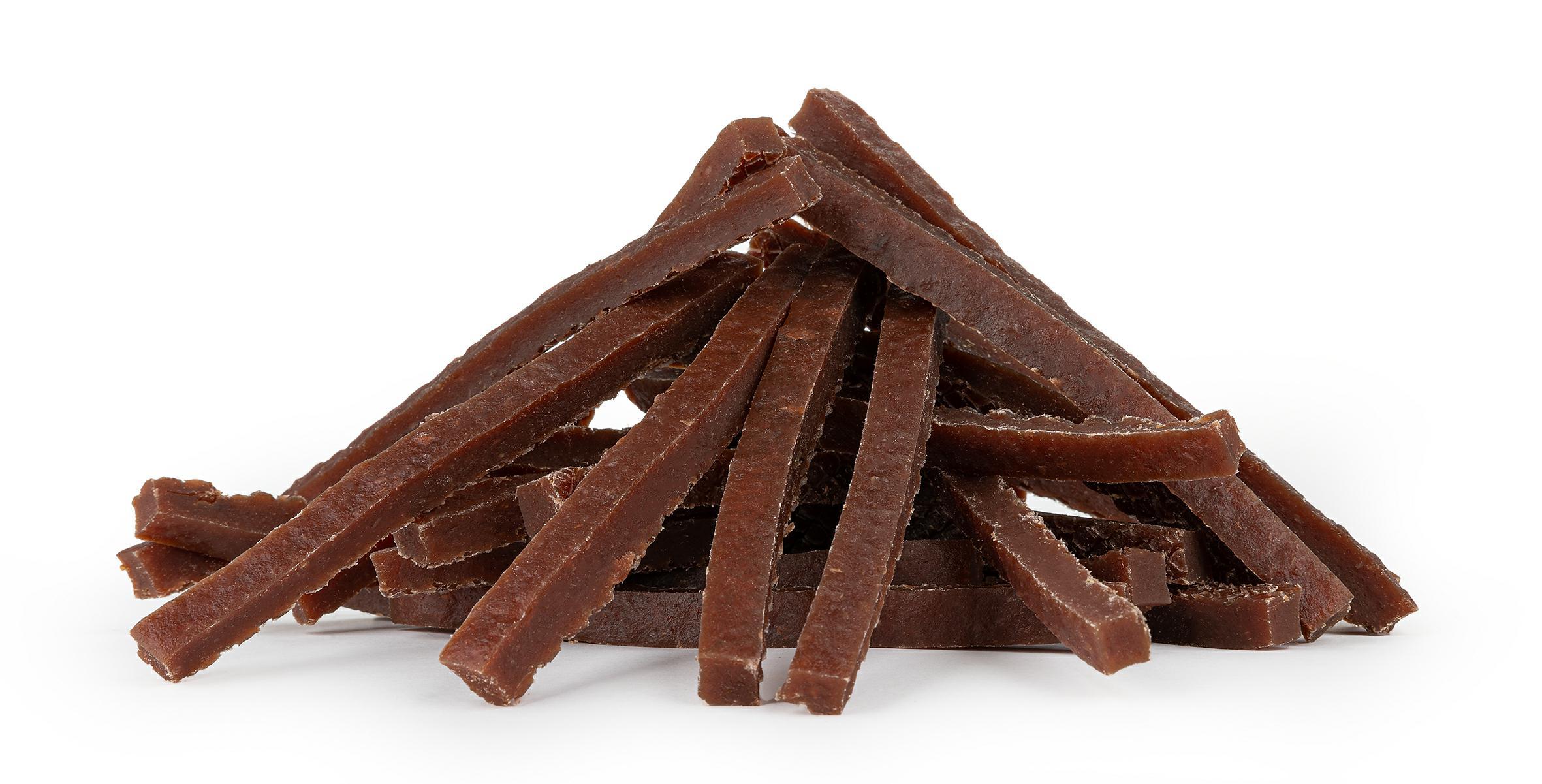 Nasze mięsne paski to idealny sposób na wzbogacenie diety Twojego pupila. Dzięki wysokiej zawartości mięsa, te smakołyki dostarczają niezbędnego białka zwierzęcego, co czyni je pyszną i zdrową nagrodą. Paski są łatwe do podziału, co pozwala na dopasowanie ich do wielkości psa - średnie i duże rasy mogą otrzymywać całe paski, a mniejsze kawałki będą odpowiednie dla mniejszych psów.