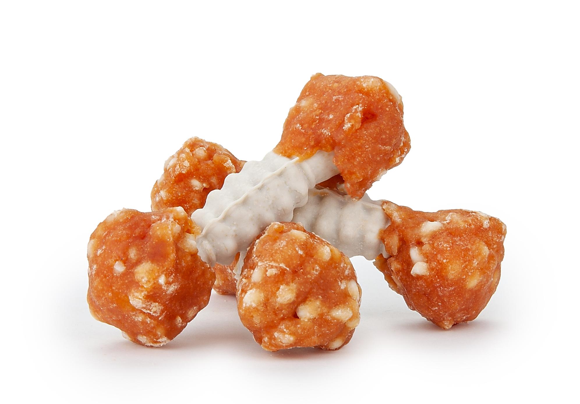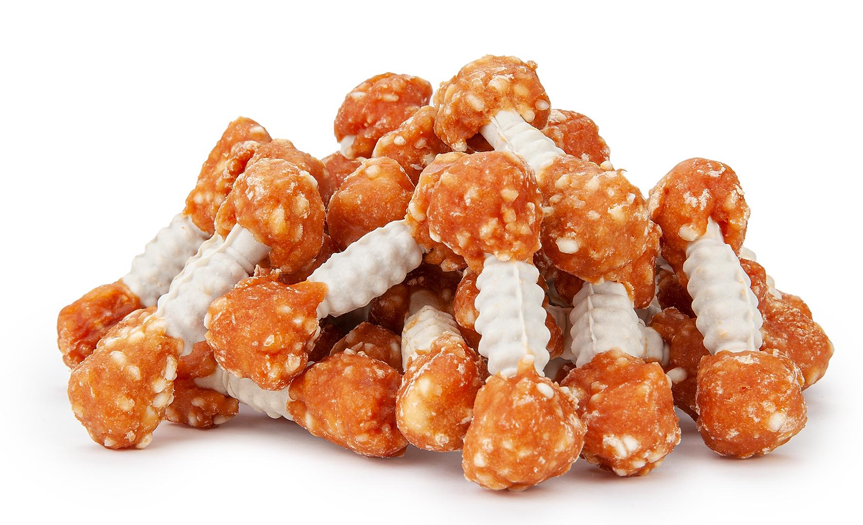 Oferujemy smaczną przekąskę dla psów, która łączy w sobie pyszny kurczak i zdrowy ryż. Każdy kawałek ma długość 5 cm i jest owinięty mięsem z piersi kurczaka, co sprawia, że wygląda niezwykle apetycznie dla każdego pupila.