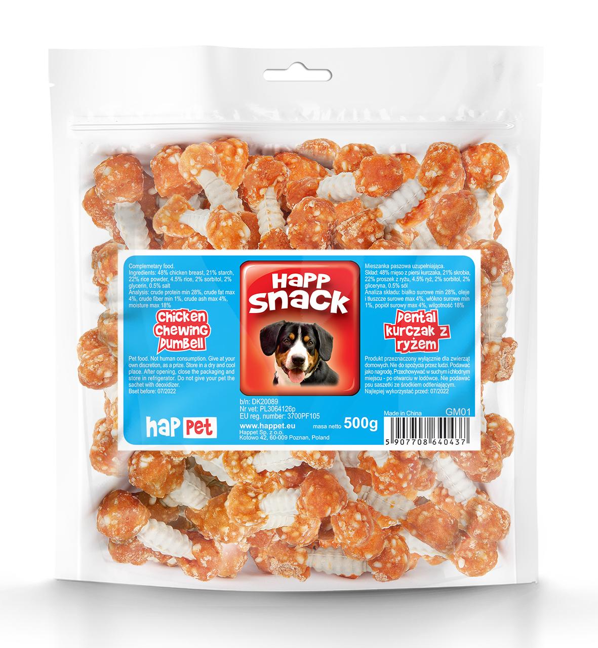 Opakowanie zawiera 0,5 kg produktu, co zapewnia długi czas użytkowania. Pamiętaj, aby podawać przysmak między posiłkami. Przekąski nie zastępują podstawowego pokarmu, a ich celem jest urozmaicenie diety. Nie zaleca się podawania szczeniętom poniżej 3 miesiąca życia.