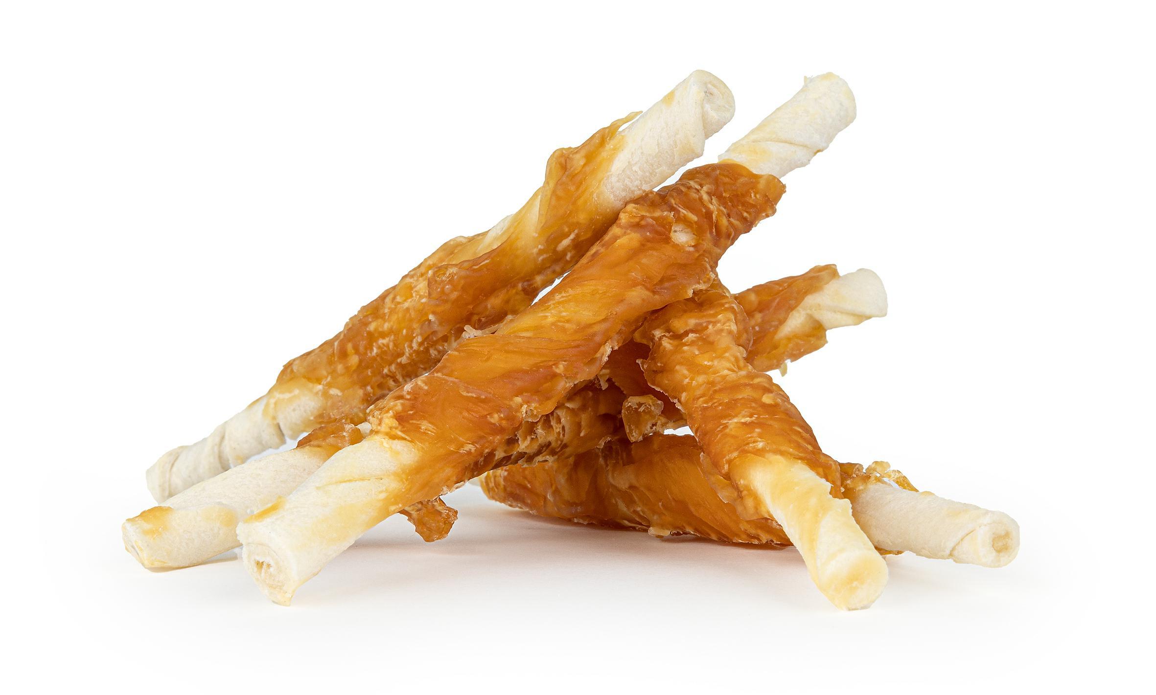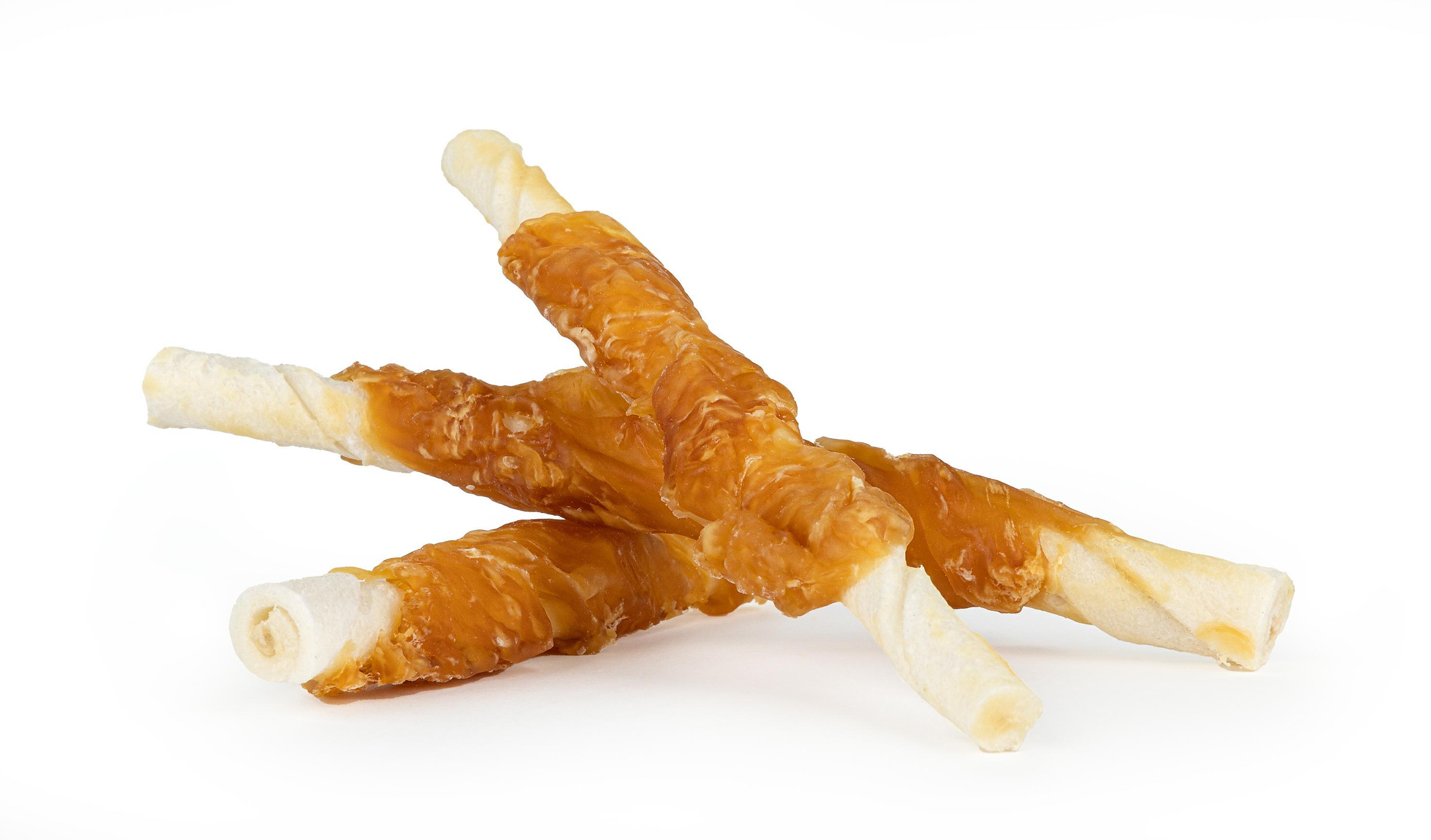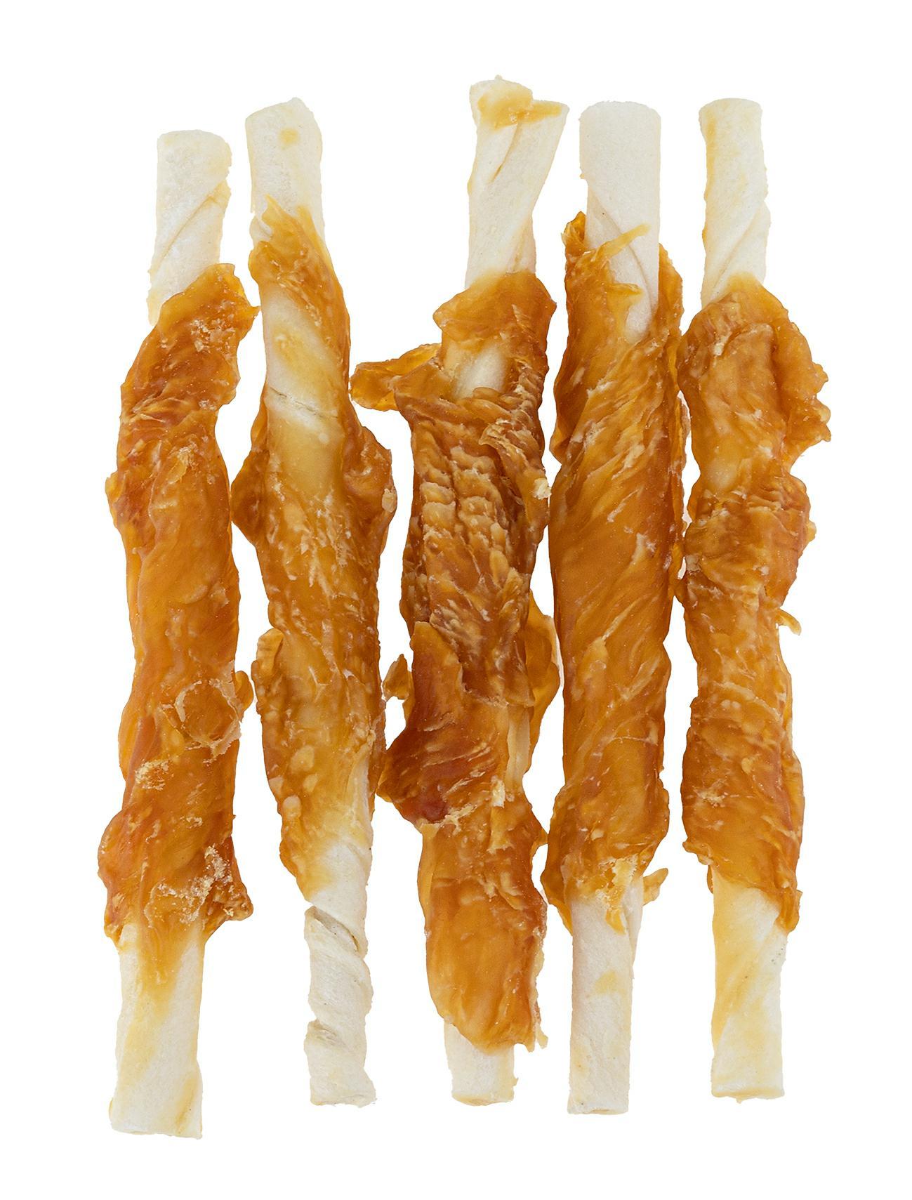 Skład: 38% mięso z piersi kurczaka, 56% skóra bydlęca, 4,5% skrobia, 0,5% gliceryna, 1% sorbitol