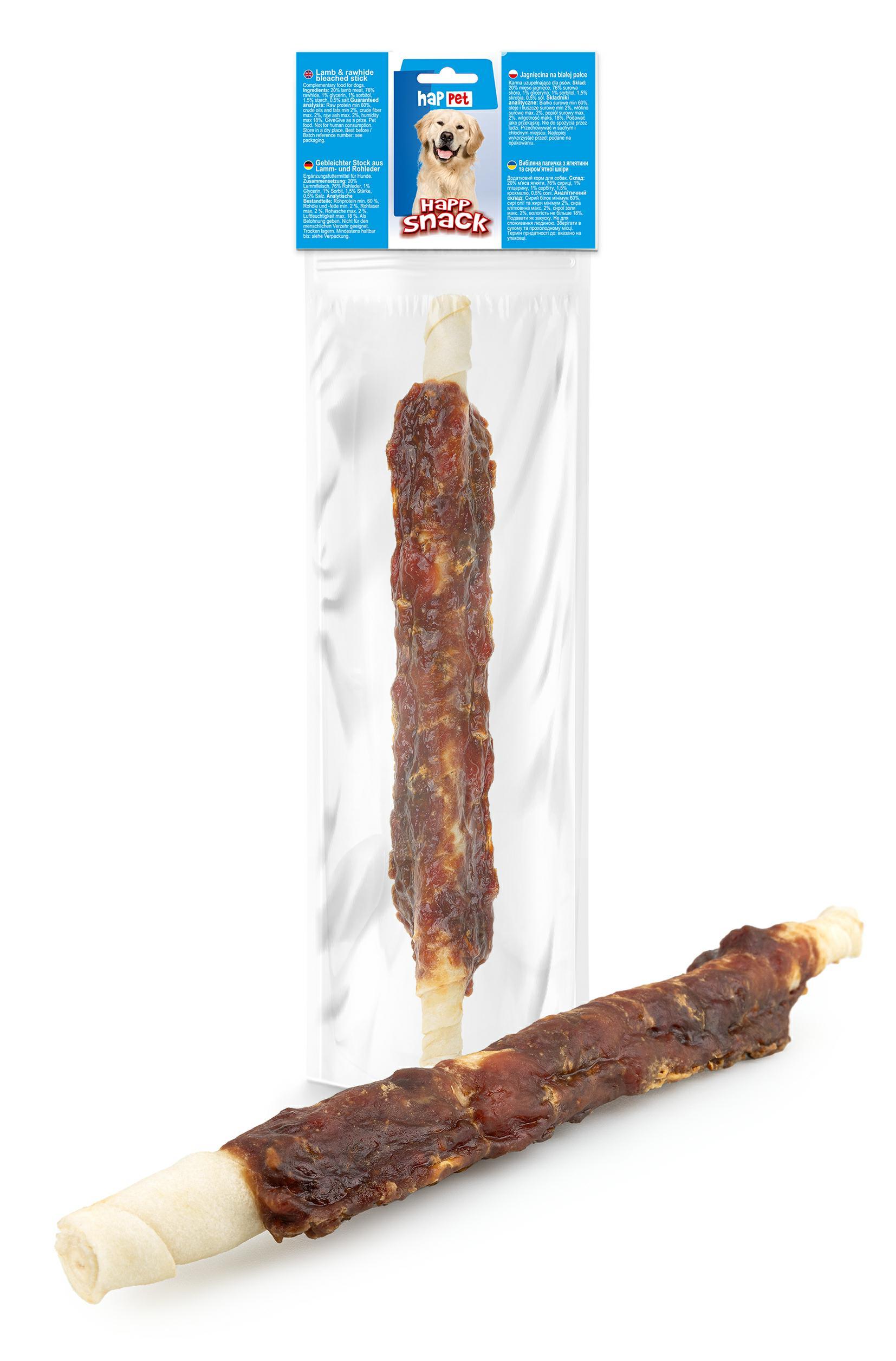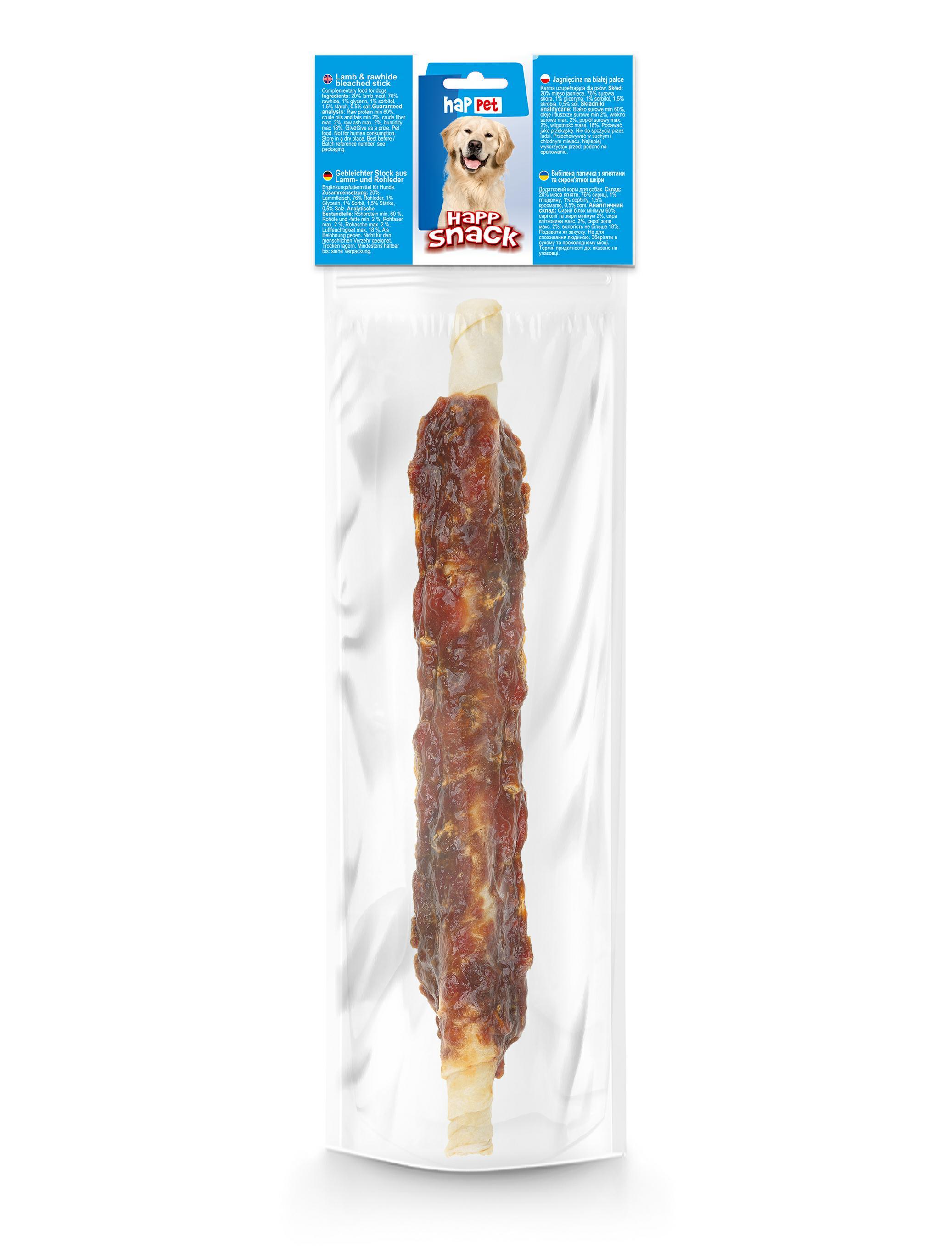 Skład: 20% mięso jagnięce, 76% skóra bydlęca, 1% gliceryna, 1% sorbitol, 1,5% skrobia, 0,5% sól