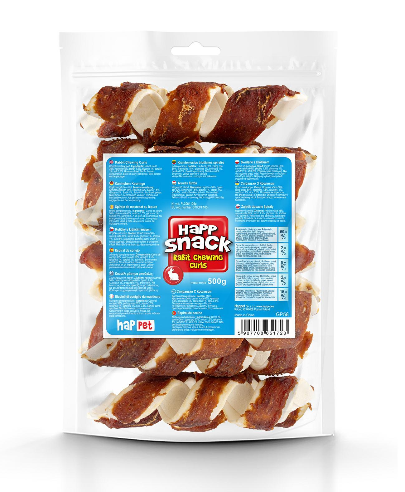 Skład: 36% mięso królicze, 60% surowa skóra, 1,5% skrobia, 1% gliceryna, 1% sorbitol, 0,5% sól