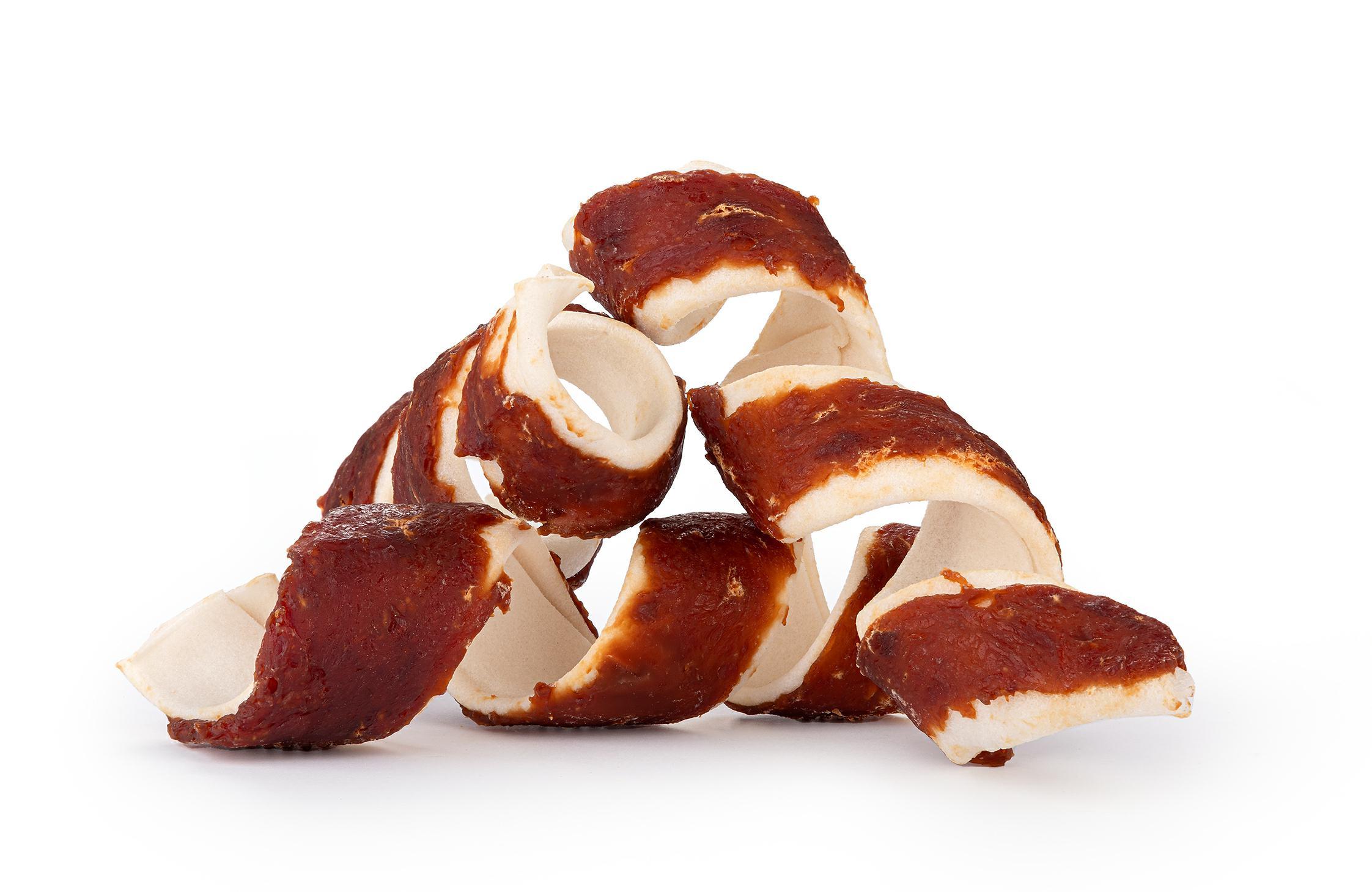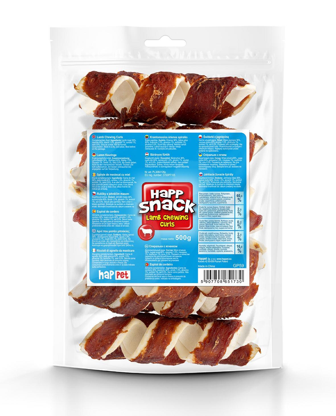 Skład: 36% mięso jagnięce, 60% surowa skóra, 1,5% skrobia, 1% gliceryna, 1% sorbitol, 0,5% sól