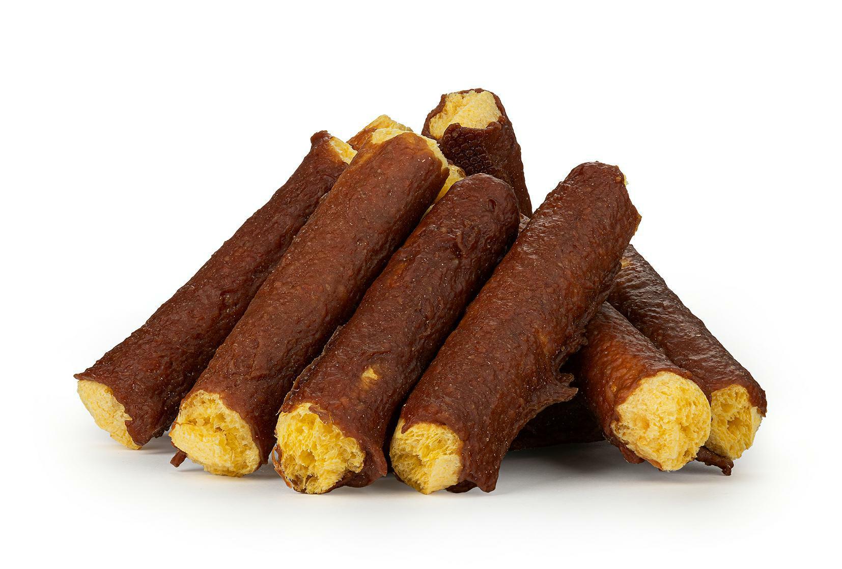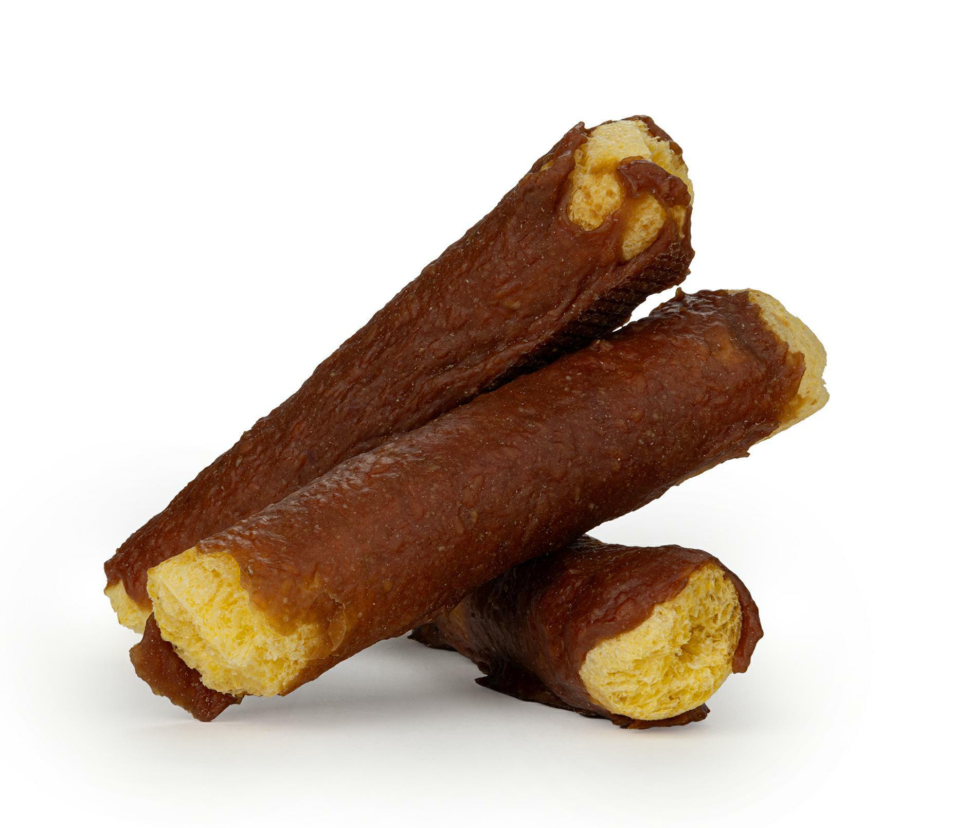 Rurkowaty kształt przysmaku sprawia, że pies cieszy się przyjemnością gryzienia, a jednocześnie wspomaga czyszczenie zębów. Dodatki takie jak gliceryna i sorbitol poprawiają teksturę i smak, co z pewnością zachwyci Twojego pupila.