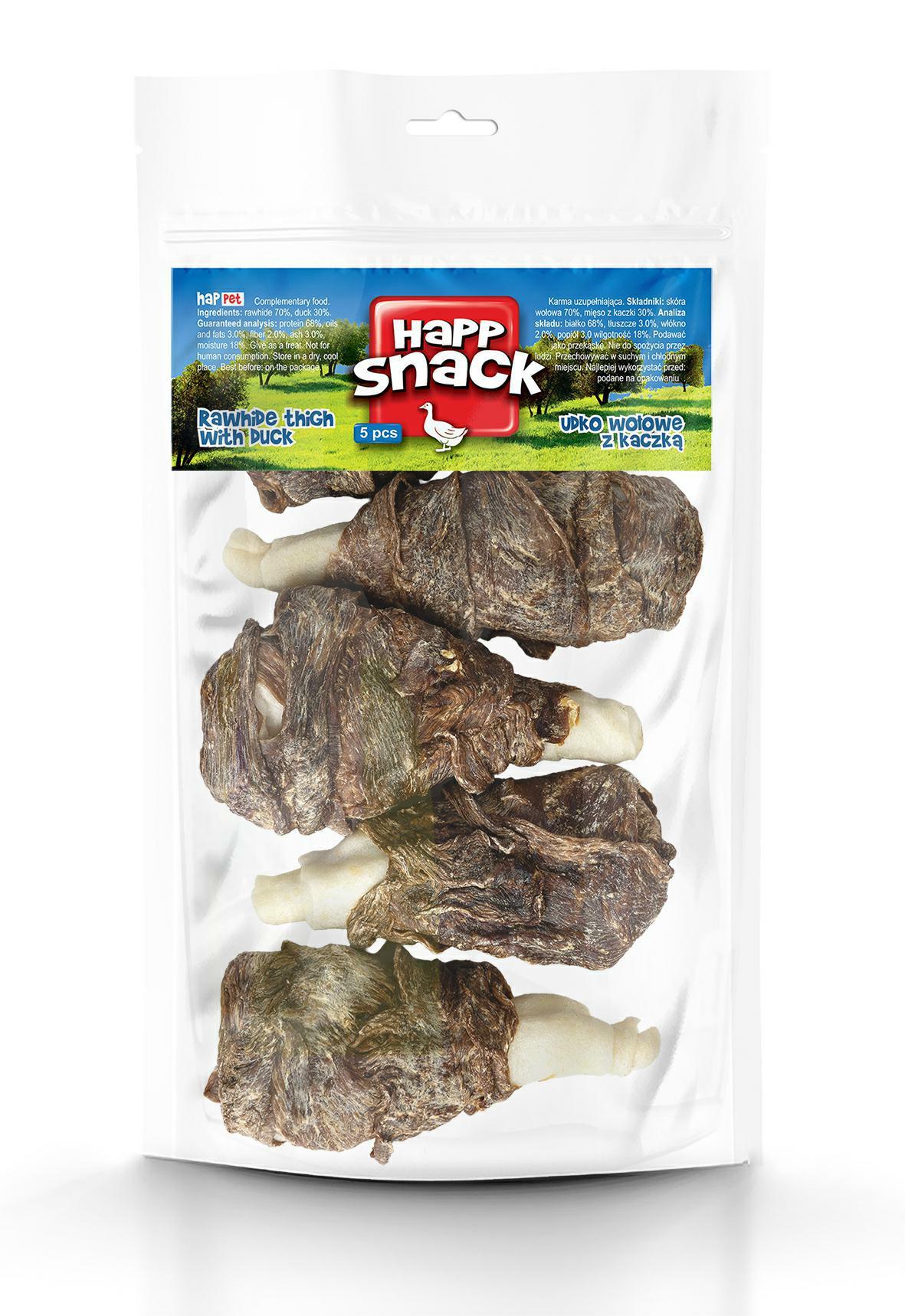 Każde udko jest wykonane z 70% skóry wołowej i 30% mięsa z kaczki. Taka kompozycja zapewnia długotrwałą przyjemność żucia, co jest idealne jako nagroda lub sposób na zajęcie psa w czasie wolnym. Dodatkowo, naturalna struktura przysmaku wspomaga czyszczenie zębów, co wpływa na higienę jamy ustnej.
