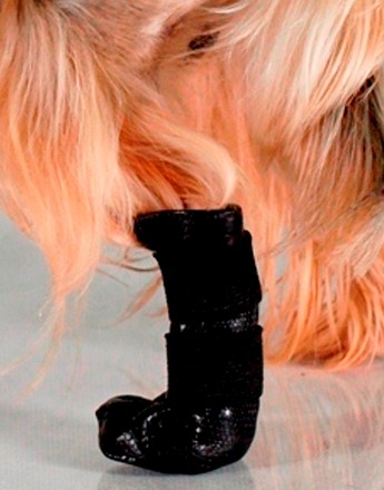 But zakłada się na chorą stopę psa i zapina na rzepy, które są przymocowane do gumy, co pozwala na swobodne krążenie krwi. Nie ma różnicy między butem prawym a lewym – jeden model pasuje do wszystkich czterech łap. Warto pamiętać, że nie jest to kalosz; but jest przystosowany do chodzenia po normalnych nawierzchniach.