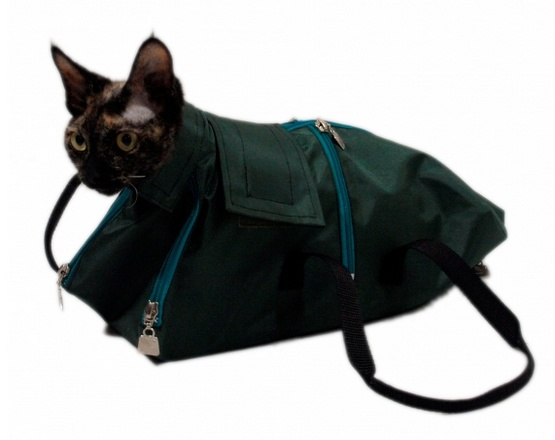 W tylnej części torby znajduje się pętelka, która pozwala na zabezpieczenie torby w pomieszczeniu, co zapobiega ewentualnemu ucieczce pacjenta. Torba jest również wyposażona w boczne rączki, co ułatwia przenoszenie zwierzęcia.