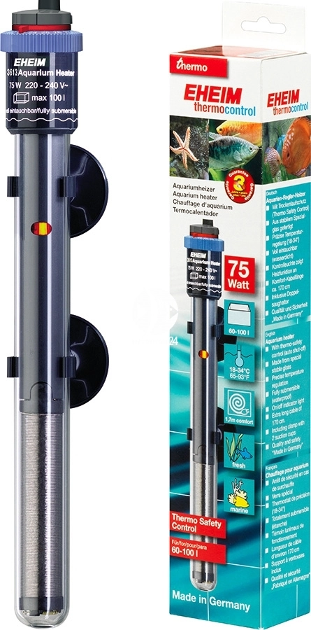 Szklana, bezobsługowa grzałka do akwarium o pojemności 50-100 litrów. Moc 100W.