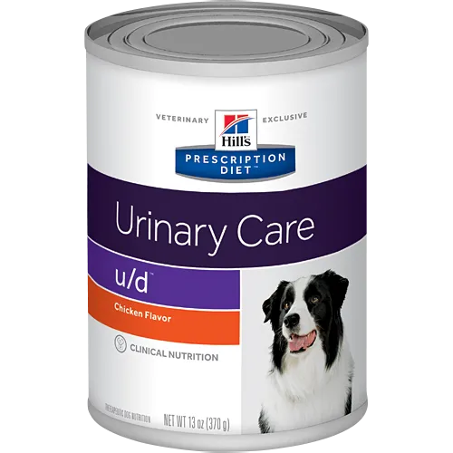Karma Hill's PD Prescription Diet u/d to pełnoporcjowa dieta dla dorosłych psów, stworzona z myślą o wsparciu zdrowia układu moczowego. Dzięki specjalnie dobranym składnikom, karma pomaga w redukcji powstawania kamieni moczanowych oraz cystynowych. Umiarkowana zawartość aminokwasów siarkowych oraz niska zawartość puryn sprawiają, że jest to idealny wybór dla psów z problemami moczowymi.