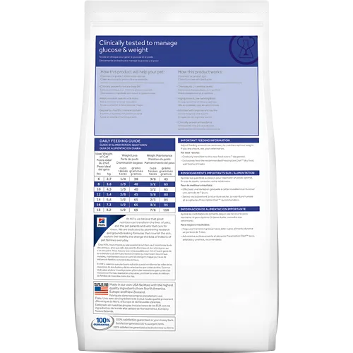 Hill's PD Prescription Diet Feline m/d Kurczak 1,5kg to specjalistyczna karma dietetyczna dla dorosłych kotów, która wspiera kontrolę wagi oraz poziom glukozy. Dzięki niskiej zawartości węglowodanów i energii, jest idealnym rozwiązaniem dla kotów z cukrzycą i otyłością.