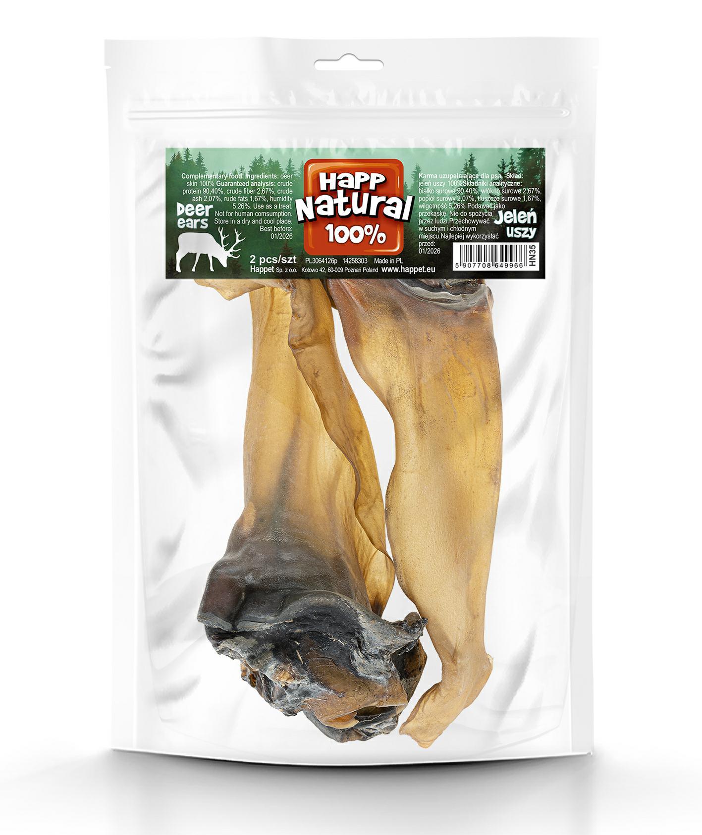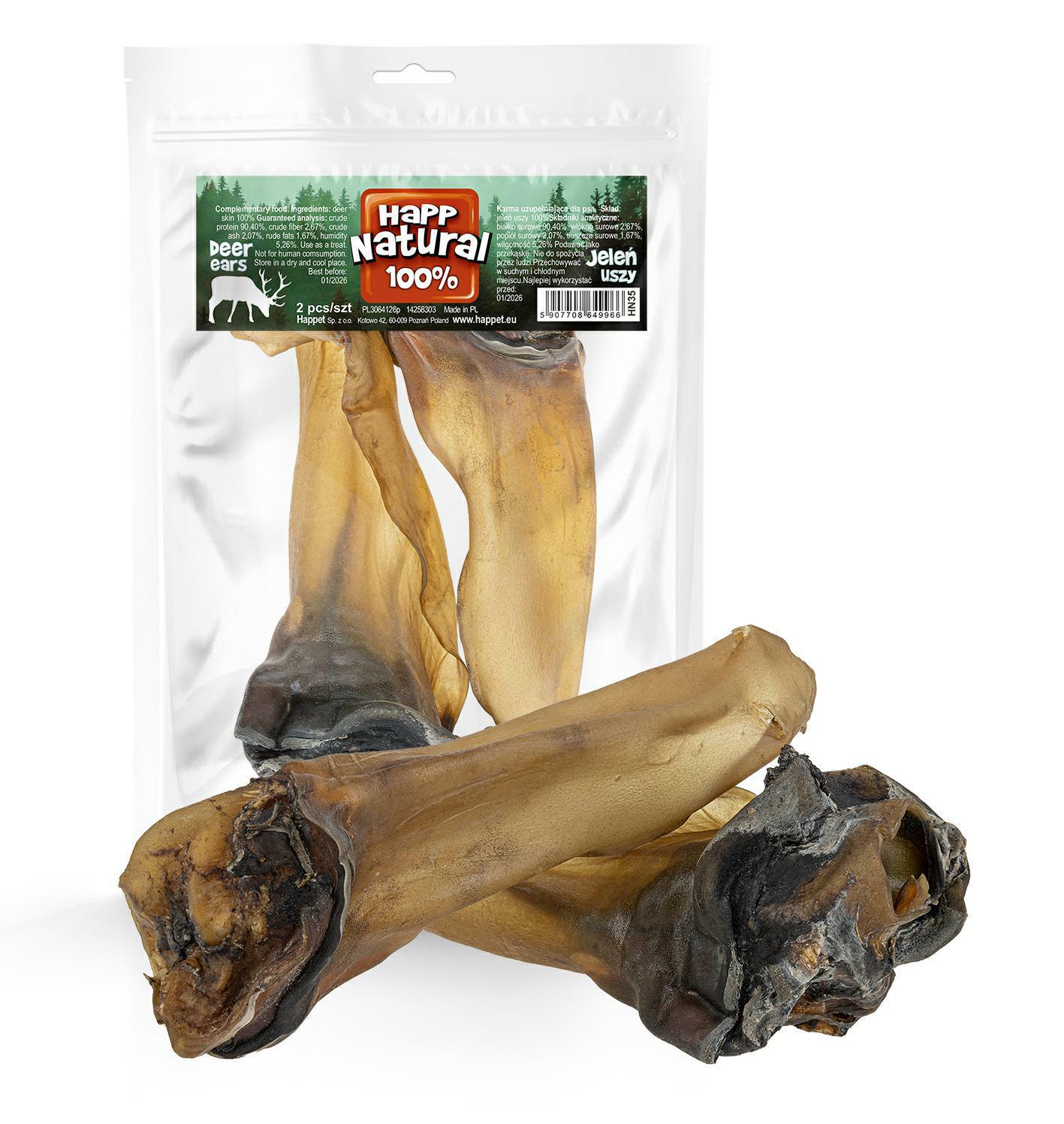 W opakowaniu znajdują się dwie sztuki naturalnych uszu jelenia, które są odpowiednie dla psów wszystkich ras i wielkości. Bez dodatków i konserwantów, są to przysmaki, które możesz śmiało podawać swojemu czworonożnemu przyjacielowi.