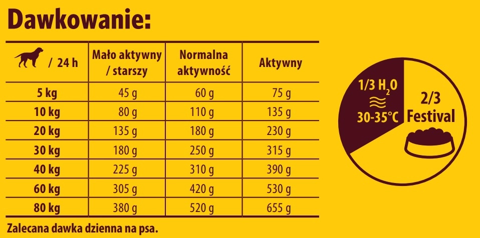 | Waga psa | Mała aktywność | Normalna aktywność | Wysoka aktywność |