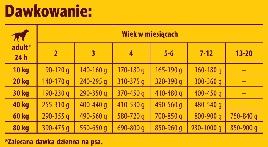 | Waga dorosłego psa | Wiek w miesiącach | |||||