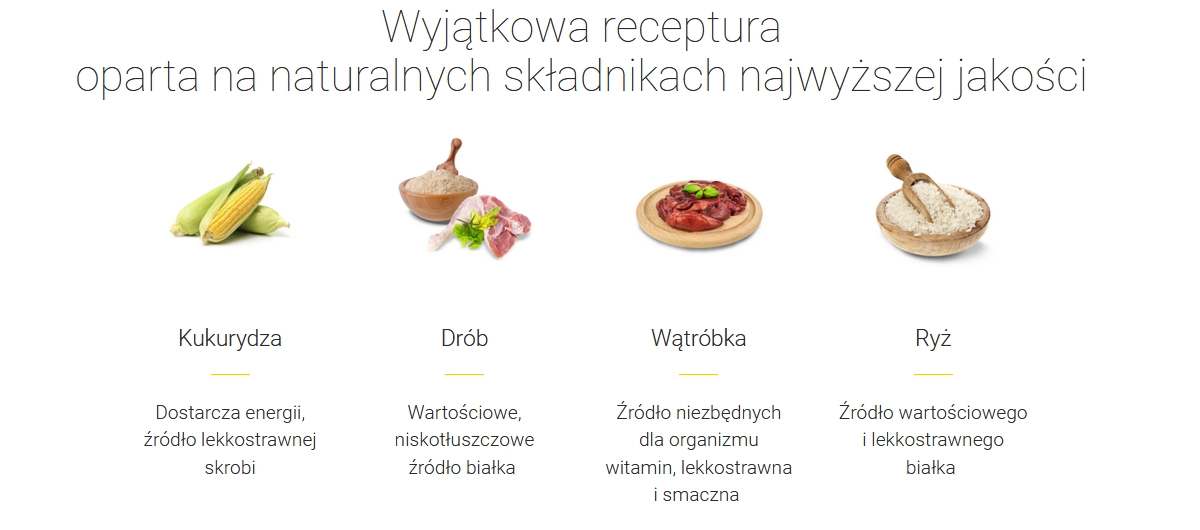 W składzie karmy znajdują się witaminy i minerały wzmacniające naturalną odporność, a także zdrowe oleje, które przyczyniają się do utrzymania pięknej sierści. Dzięki zastosowaniu zamka błyskawicznego, opakowanie można łatwo zamknąć, co pozwala na dłuższe zachowanie świeżości karmy.