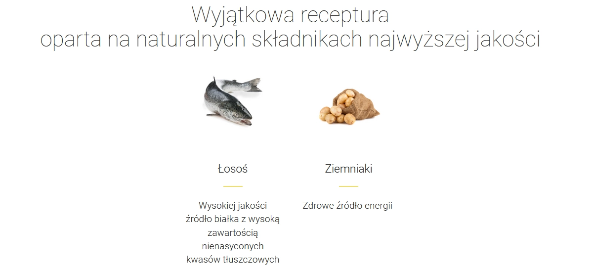 Karma nie zawiera sztucznych barwników ani konserwantów, co zapewnia naturalny posiłek. Składniki są starannie dobrane, aby zmniejszyć ryzyko alergii. Bezzbożowa formuła sprawia, że jest odpowiednia dla kotów, które mogą mieć problemy z nietolerancją pokarmową.