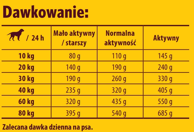 | Waga psa | Mała aktywność | Normalna aktywność | Wysoka aktywność |