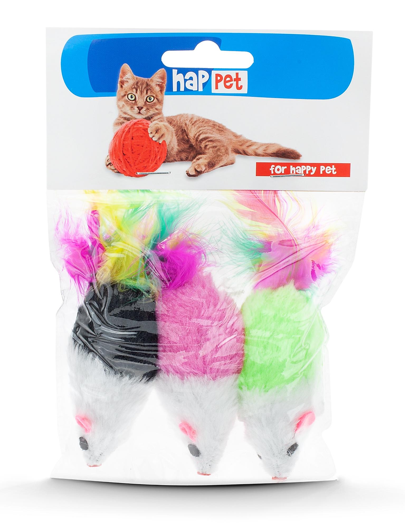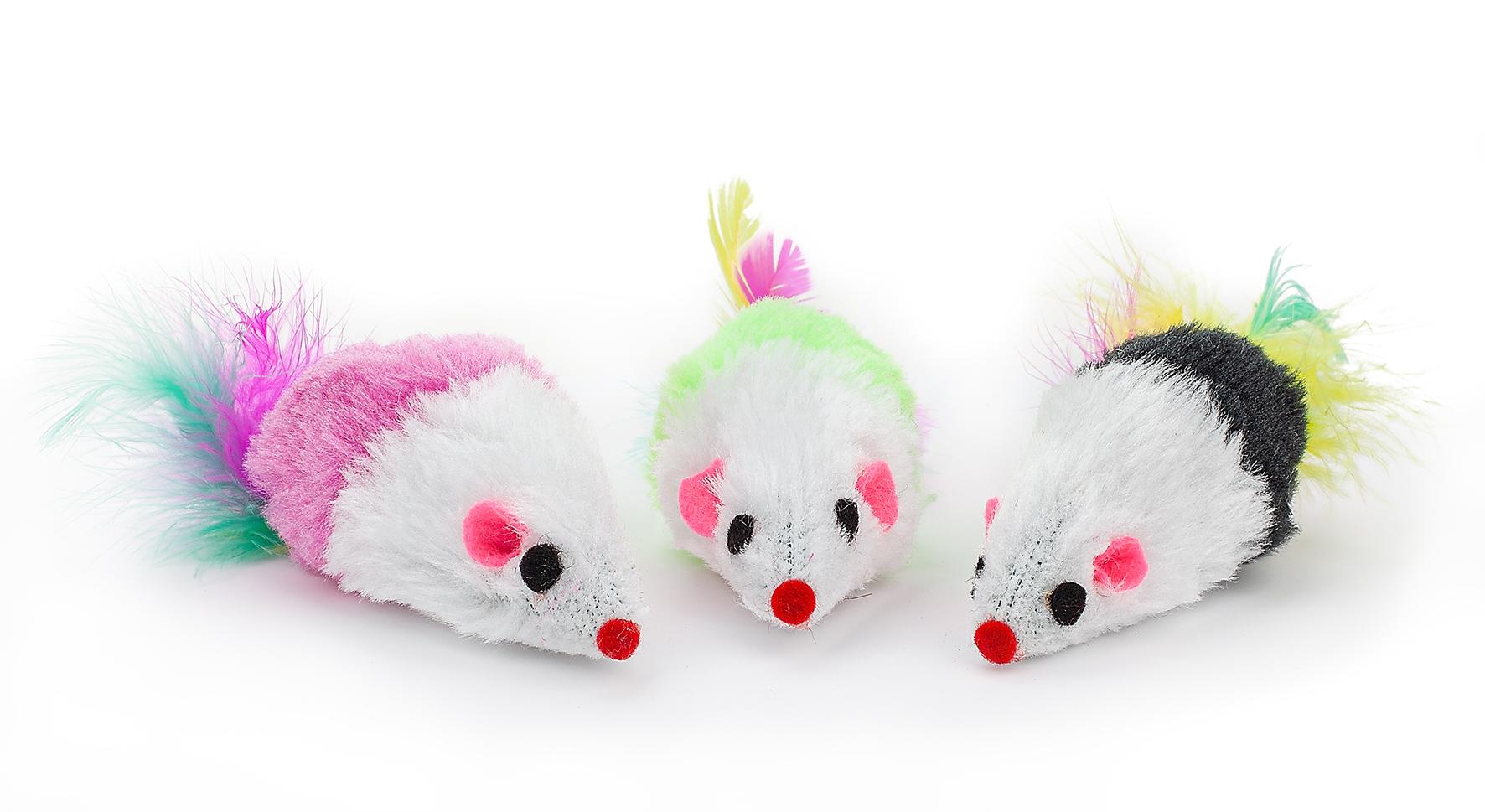 Te wielokolorowe myszki to idealna zabawa dla Twojego kota. Pokryte naturalnym pierzem, przyciągają uwagę i zachęcają do aktywności. Długi ogonek z barwnych piór dodatkowo stymuluje intelektualnie i ruchowo. Koty uwielbiają zabawę, a te myszki z pewnością dostarczą im radości.