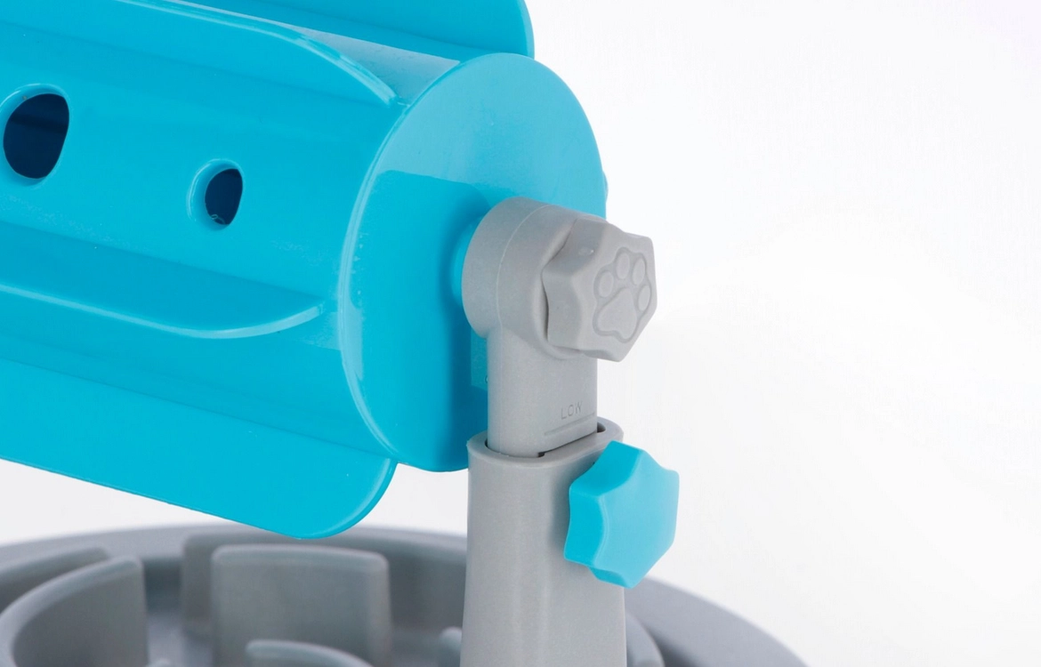 Wypełnij przegródki przysmakami lub suchą karmą i zachęć swojego psa do eksploracji. Zabawka wykonana z tworzywa sztucznego, posiada rolkę, która umieszcza przekąski w płycie, zapobiegając pośpiesznemu jedzeniu. Otwory o wielkości 0,9 cm i 1,5 cm umożliwiają dostosowanie trudności. Dodatkowo, zamykany otwór ułatwia napełnianie, a regulowana wysokość rolki pozwala na dostosowanie do potrzeb pupila. Antypoślizgowe gumowe nóżki zapewniają stabilność podczas zabawy.