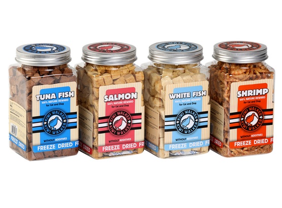 Odkryj zdrową i smaczną przekąskę dla swojego pupila z przysmakami Kiwi Walker! To liofilizowane smaczki, które zawierają 100% krewetek. Dzięki procesowi liofilizacji, woda została usunięta, co pozwoliło zachować naturalne właściwości i wartości odżywcze. Nie znajdziesz tu konserwantów ani sztucznych dodatków – tylko czysta natura.