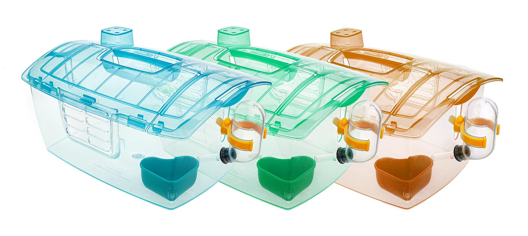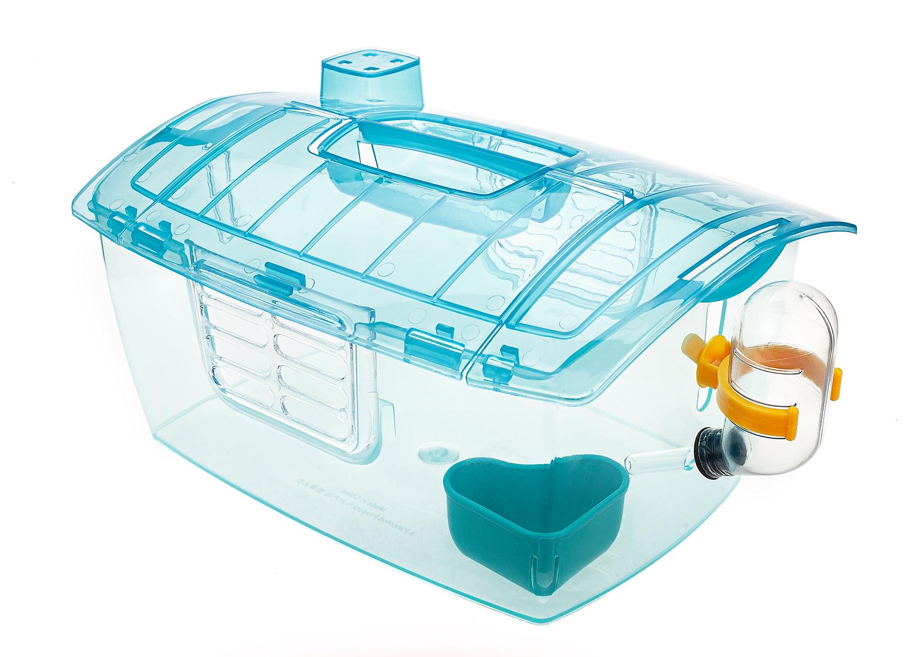 Estetyczny transporter dla gryzoni w kształcie domku, idealny jako pierwsze miejsce dla Twojego małego pupila. Wykonany z nietoksycznego i wytrzymałego tworzywa sztucznego, zapewnia bezpieczeństwo i komfort. W zestawie znajduje się poidełko oraz miseczka na karmę, a także okienko wentylacyjne, które gwarantuje dostęp do świeżego powietrza.