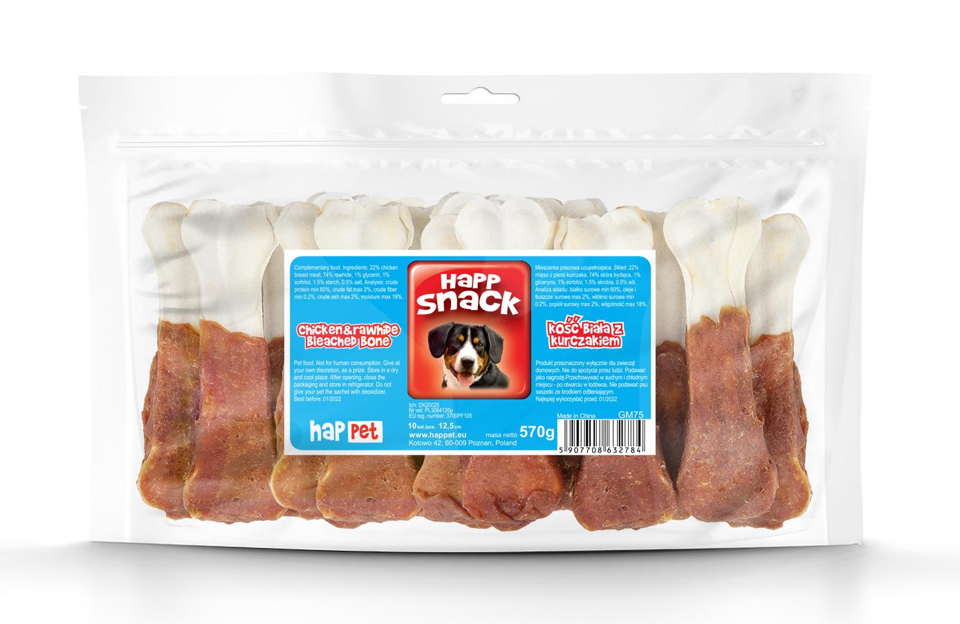 Skład: 22% mięso z piersi kurczaka, 74% skóra bydlęca, 1% gliceryna, 1% sorbitol, 1,5% skrobia, 0,5% sól