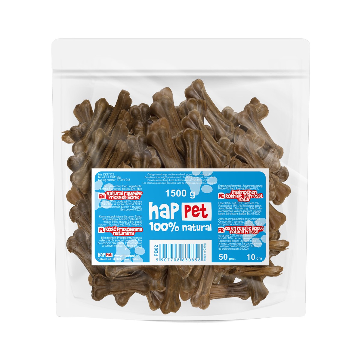 Kość prasowana Happet to idealny przysmak dla Twojego psa. Wykonana z rozgotowanej skóry wołowej, jest twarda, trwała i smakowita. Dzięki naturalnym składnikom, kość nie zawiera sztucznych dodatków, co sprawia, że jest w 100% strawna i bezpieczna dla zwierząt.
